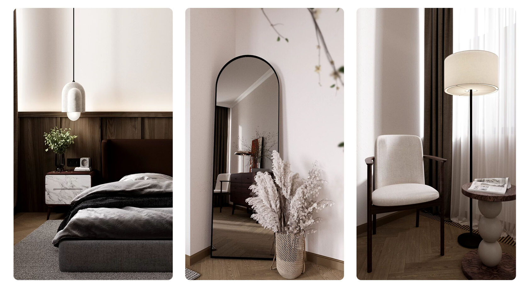 Итоговый проект модуля: Дизайн-концепция, чертежи и 3D-визуализация трехкомнатной квартиры с тремя вариантами планировки по реальному брифу.