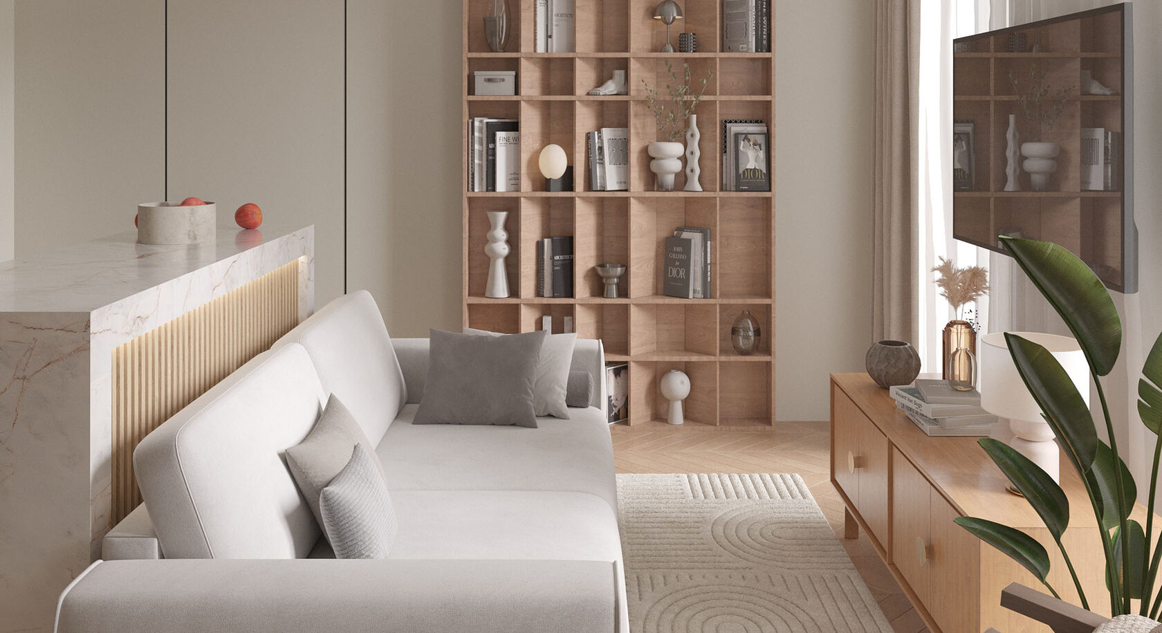 Итоговый проект модуля: Работа с реальным заказчиком и поставщиками; формирование брифа, дизайн-концепция, чертежи и 3D-визуализация жилых или нежилых помещений многокомнатной квартиры с тремя вариантами планировки.